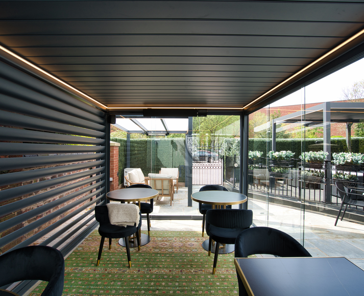 Our pergola collection includes advanced bioclimatic louvered roof pergolas, retractable roof systems and freestanding structures with glass or polycarbonate roofing. Adjustable rotating louvres provide precise control over sunlight, ventilation and rain protection, creating comfortable outdoor environments throughout the seasons. Enhance your pergola with zip screens, sliding glass walls, LED lighting and infrared heating for a fully enclosed living space. Designed for Cambridgeshire homeowners seeking architectural elegance, our pergolas combine premium engineering with bespoke customisation.